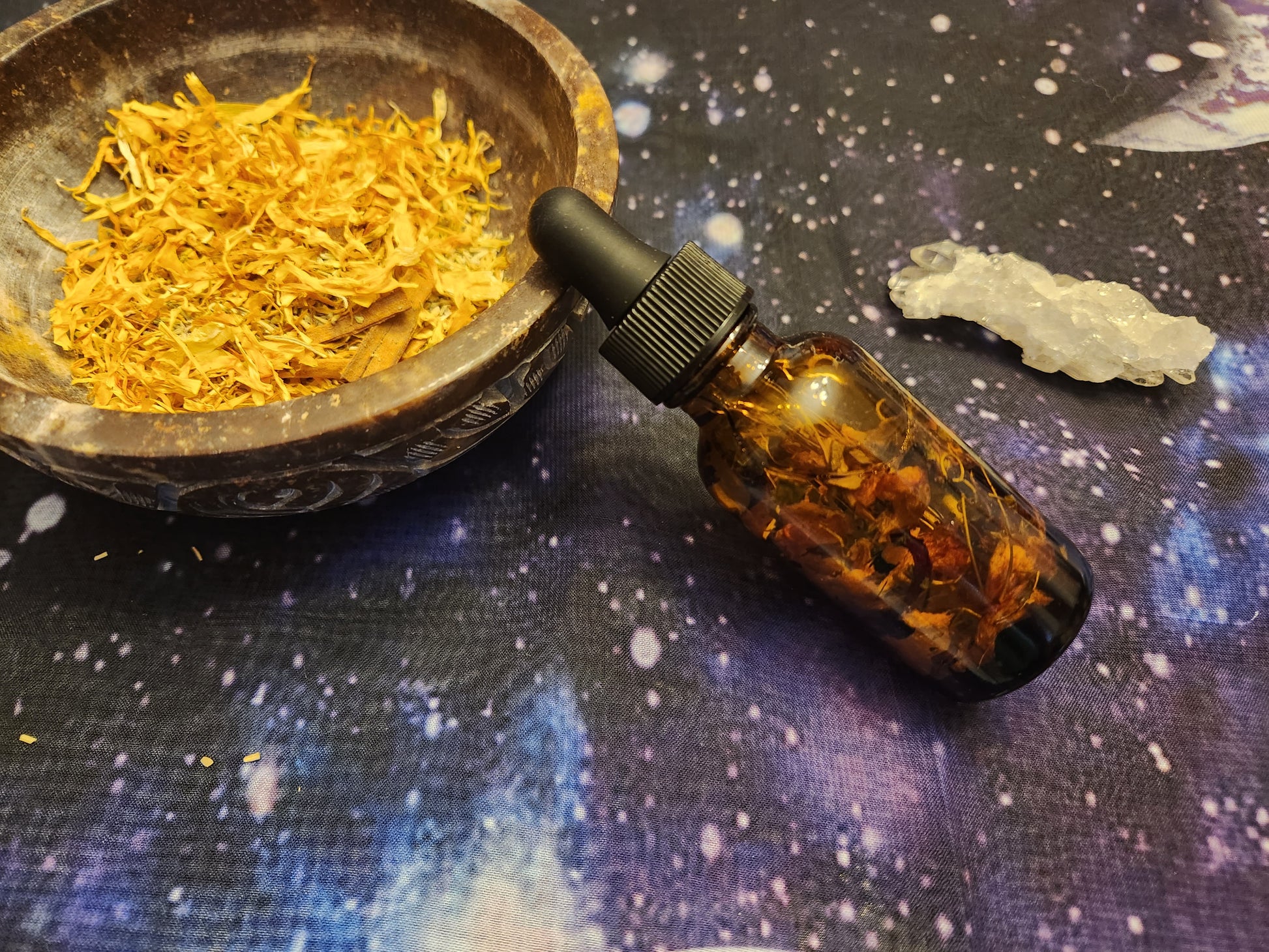 Gems, herbs, and spices are intently selected, blended together and infused to create a lovely ritual oil.